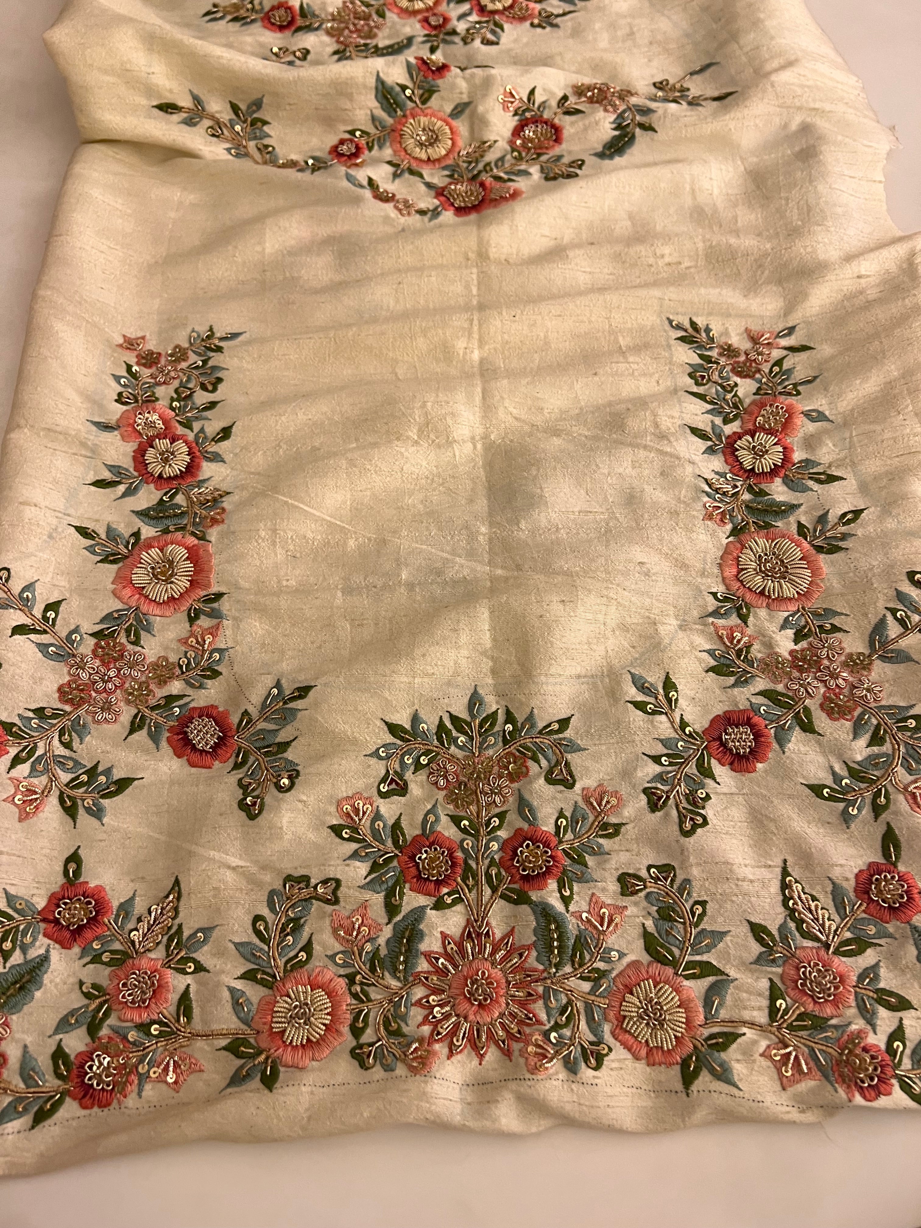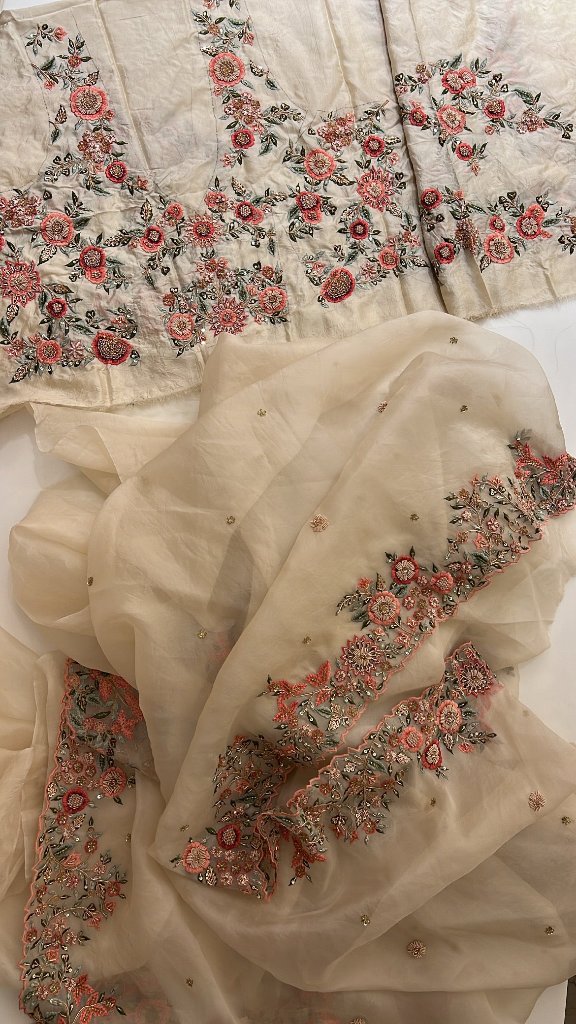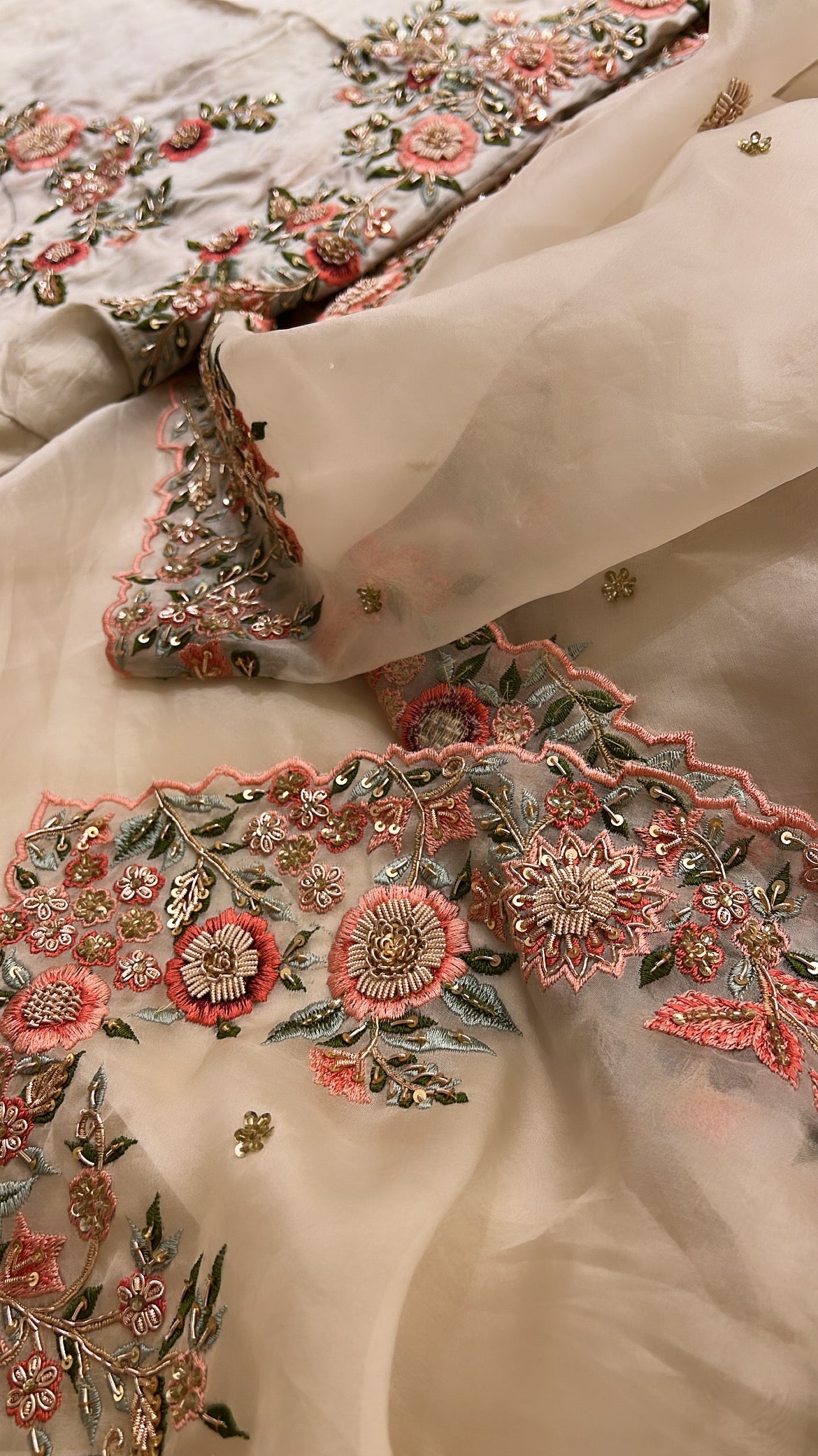 Ivory pure Organza saree with heavy bridal look blouse, handwork Zardozi with Resham,sequins, Cutwork boarder.