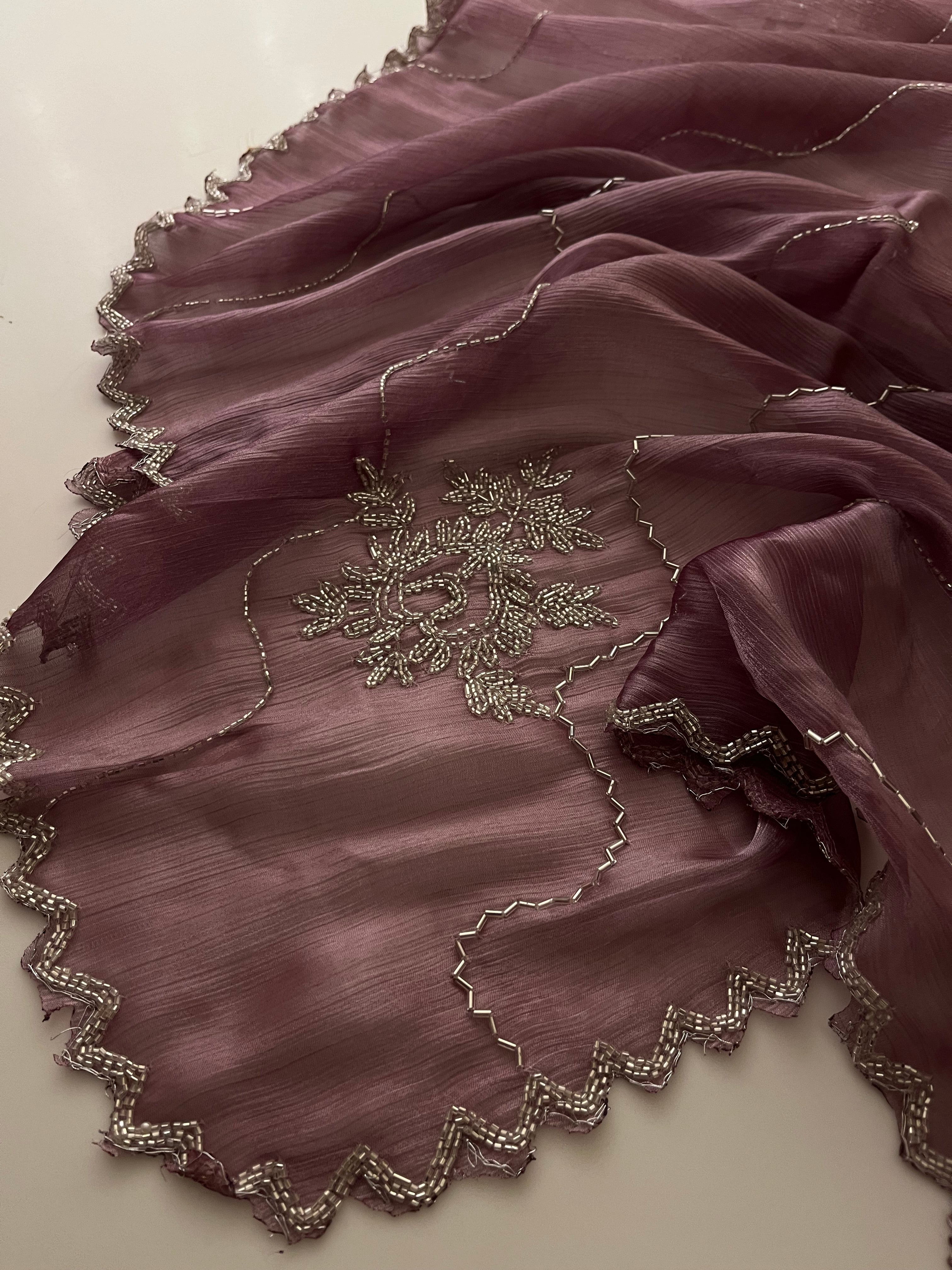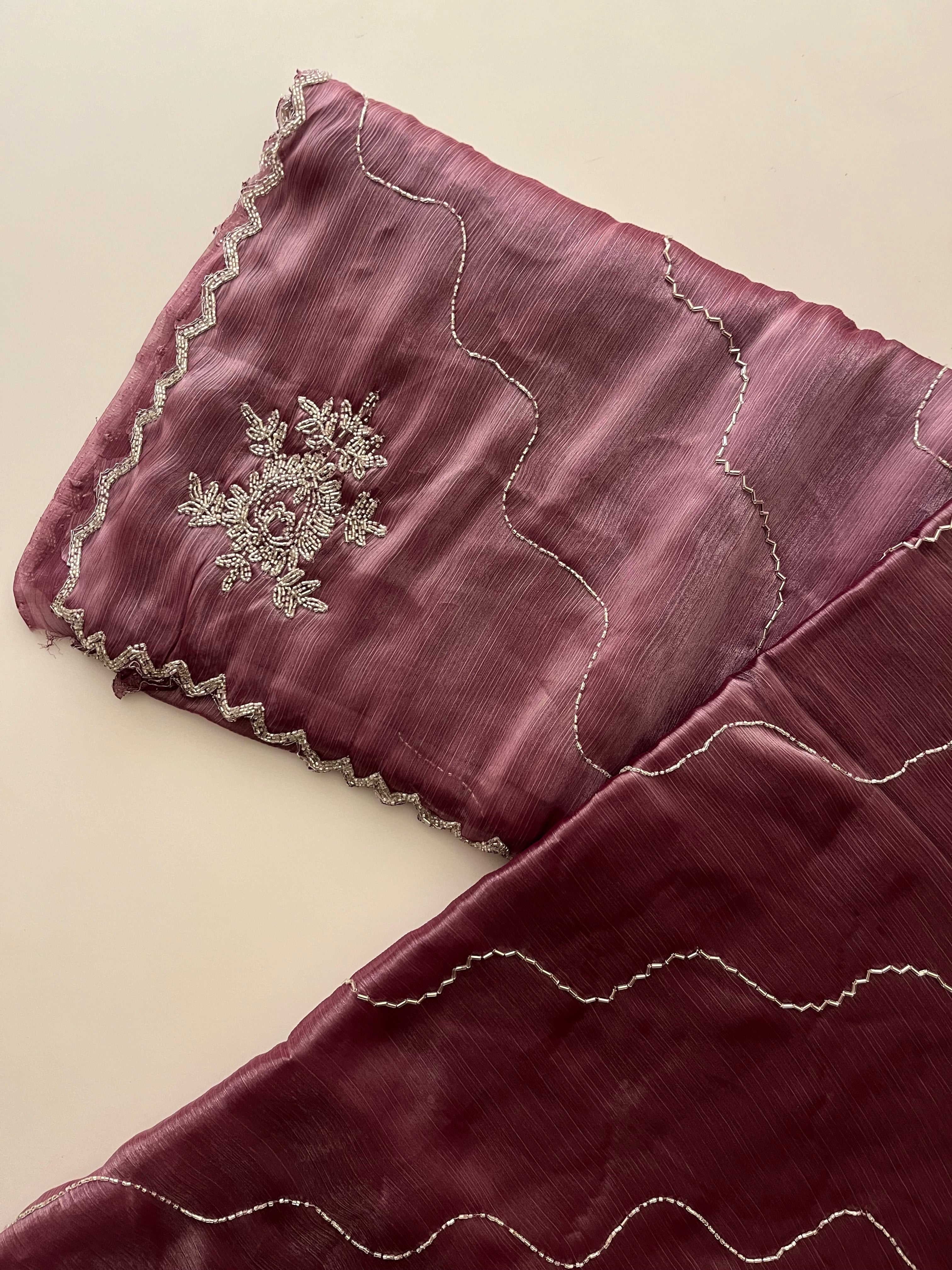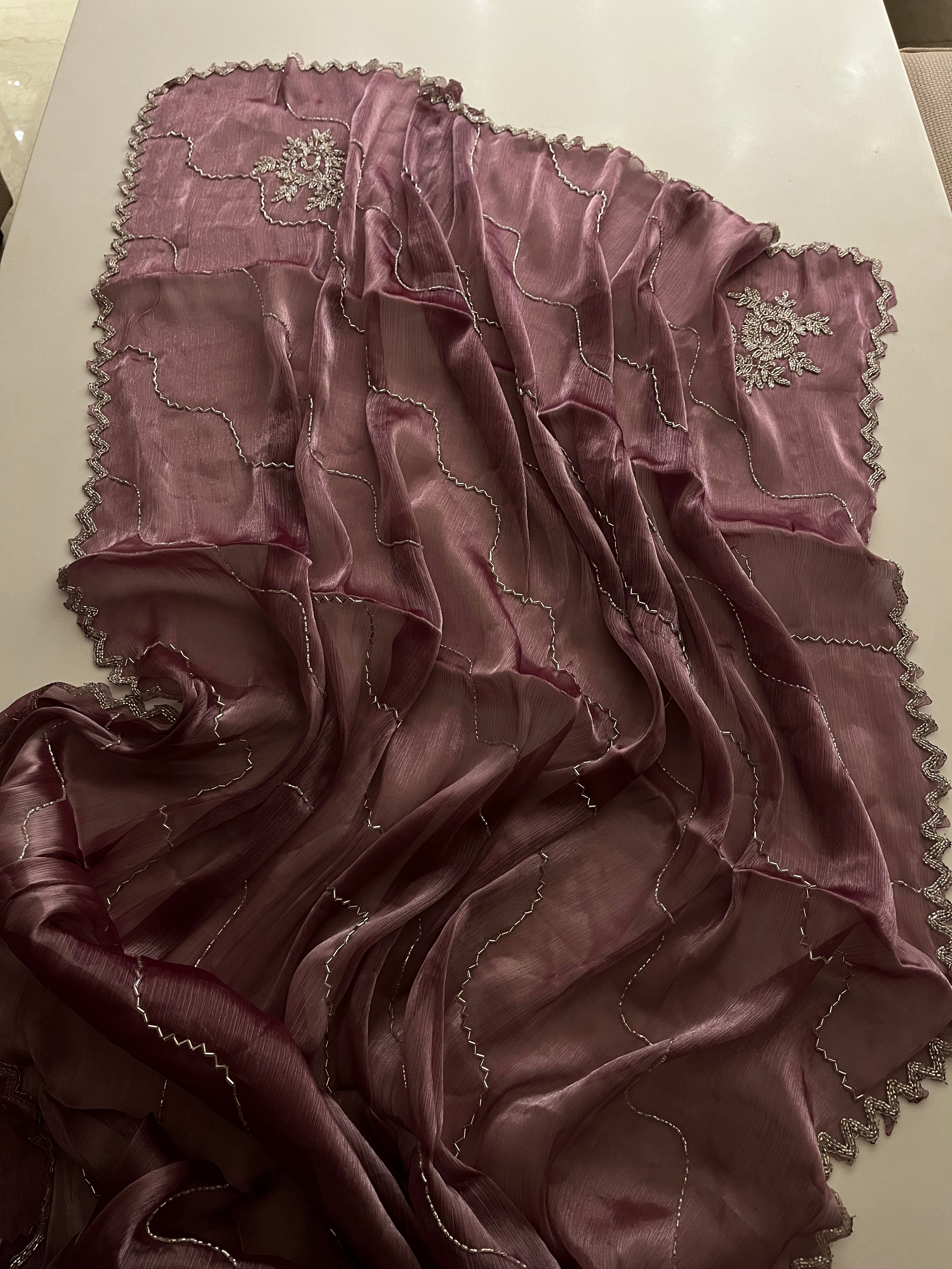 luscious tissue saree with heavy cutdana handwork  wave cutdana handwork allover saree blouse included