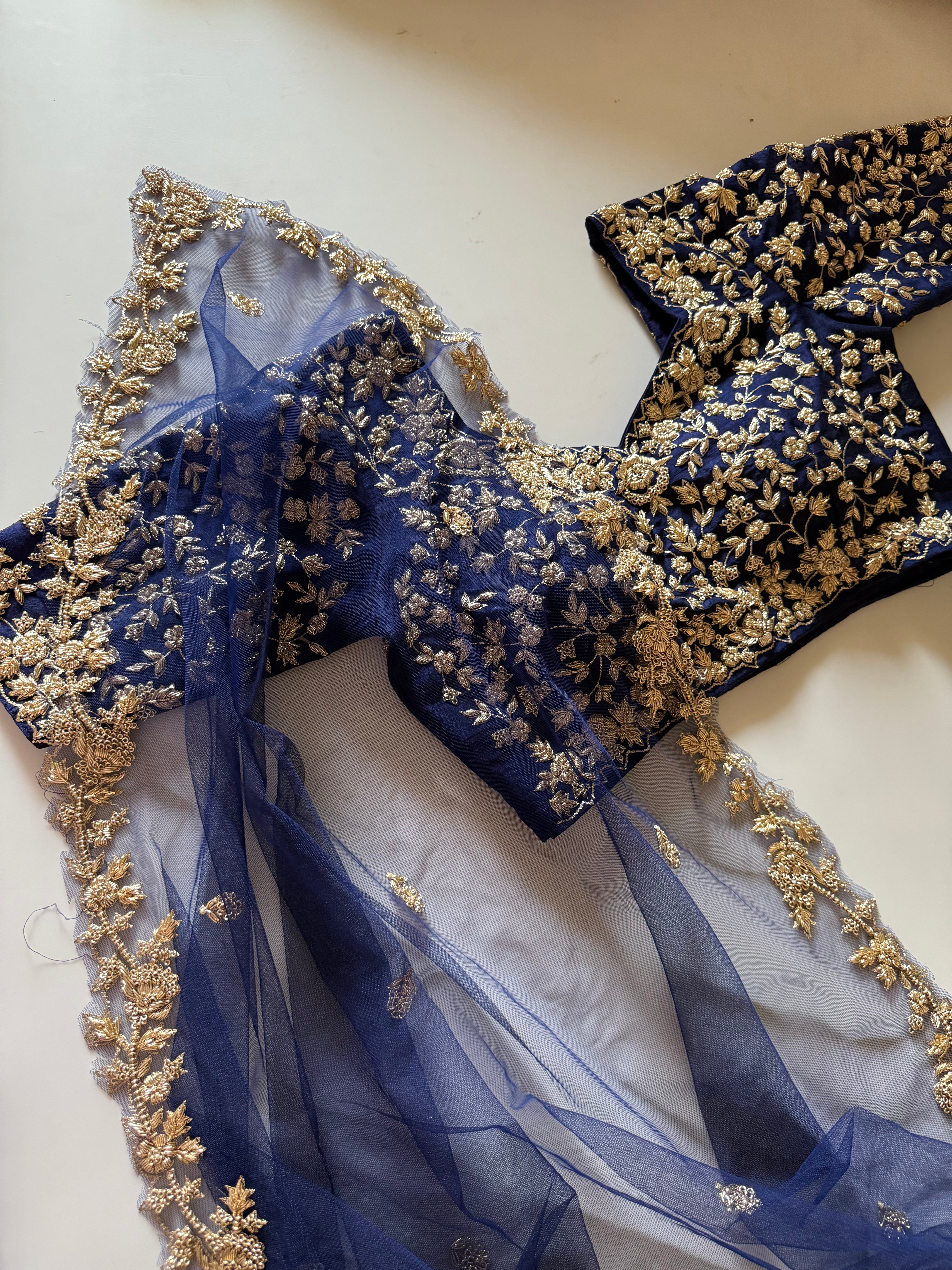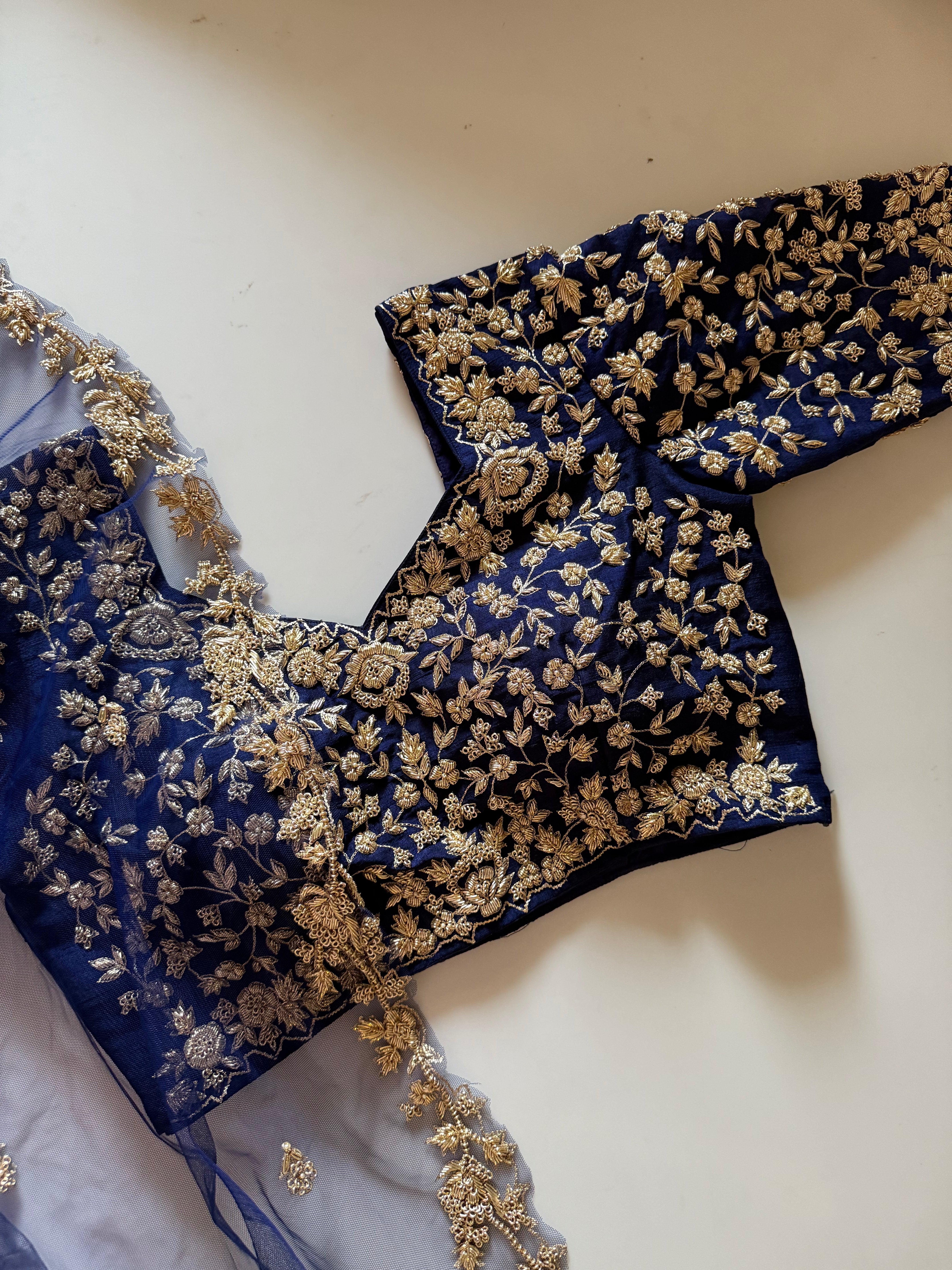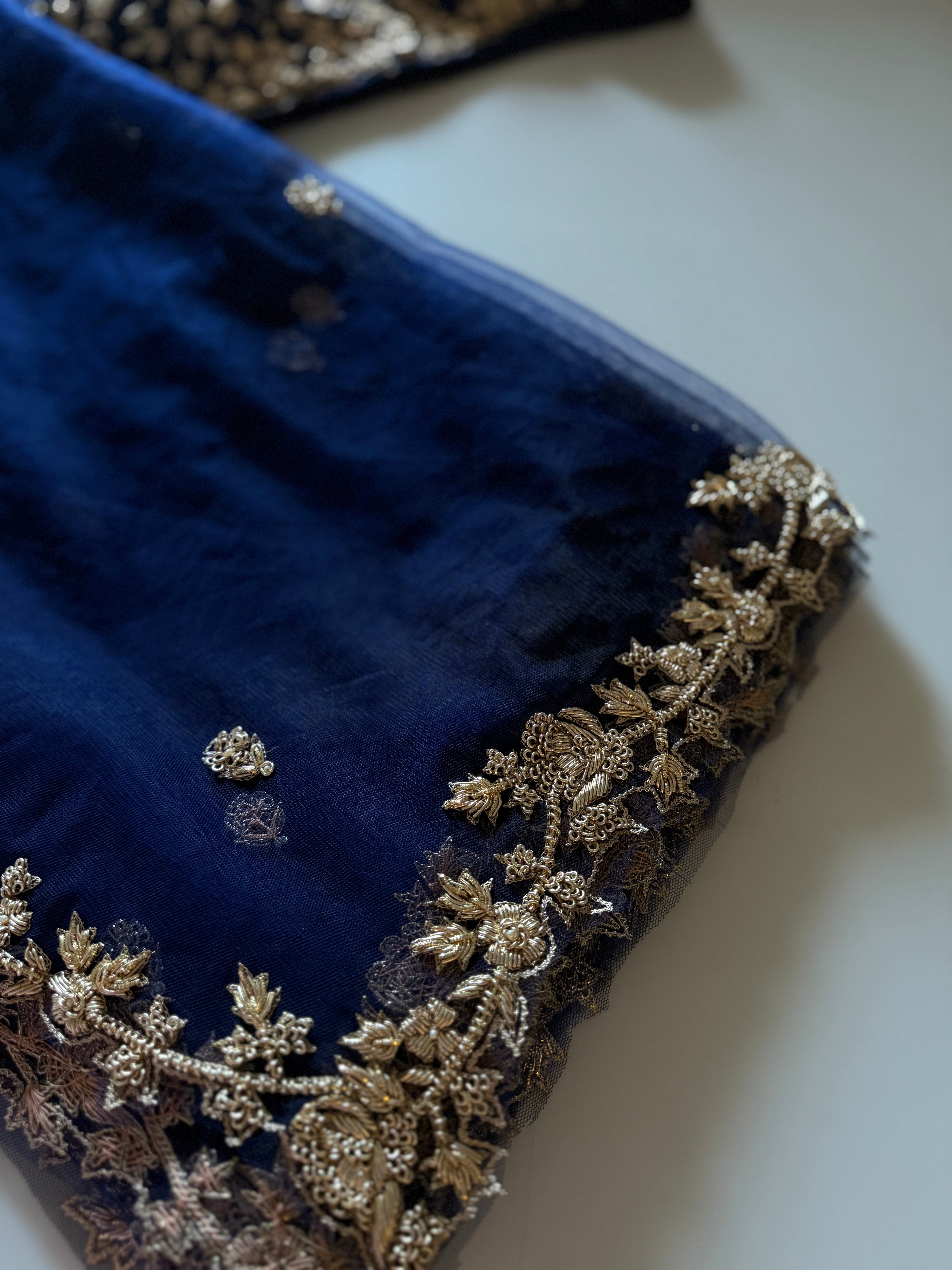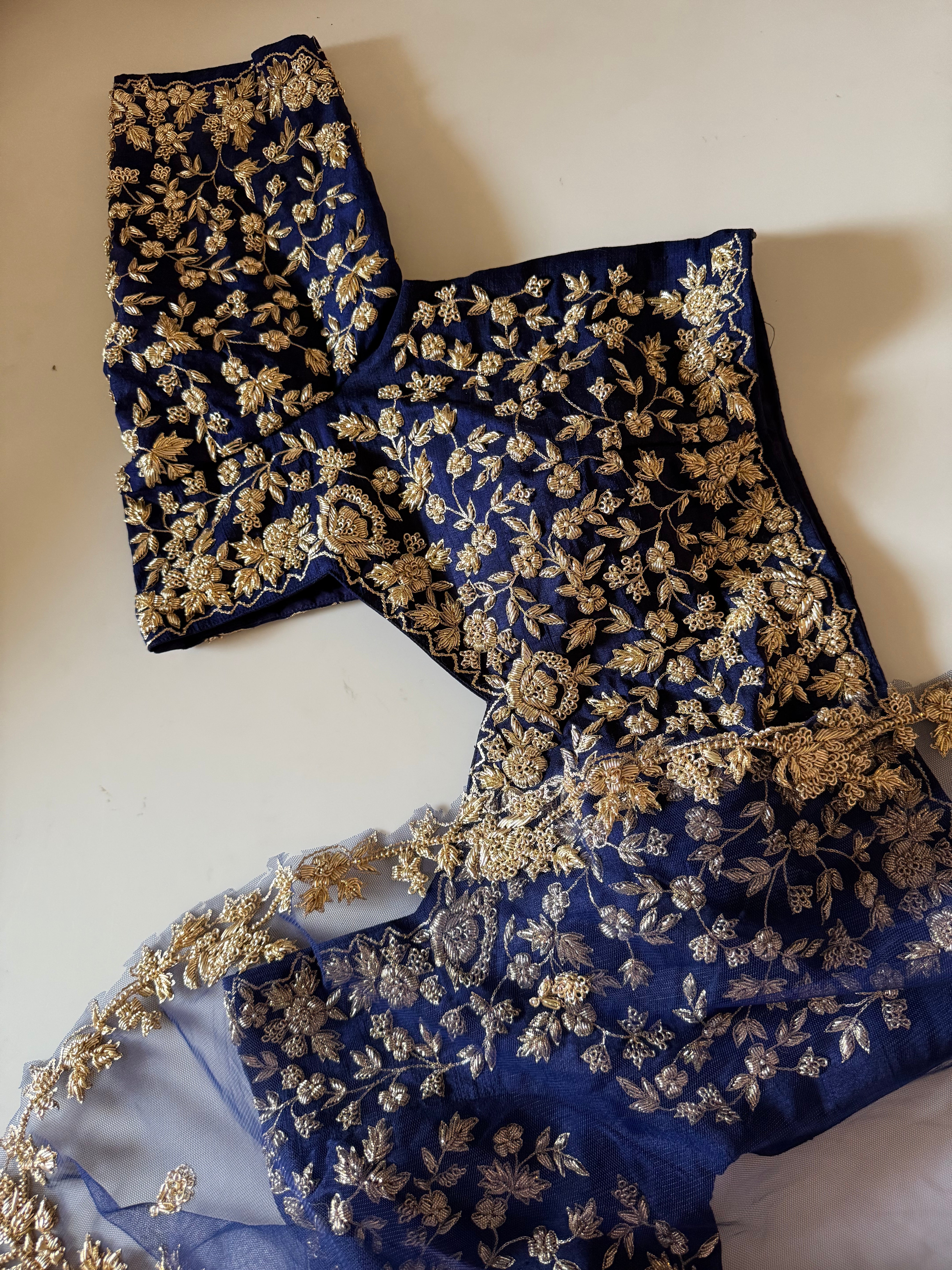 Fine handwork Zardozi heavy raw silk blouse with delicate handwork boarder net saree. ( customisable on organza )  colours customisable  full handwork blouse, front back and sleeves ( blouse will come unstitched )  email us or what’s ap for stitched blouse with all measurements and order no.