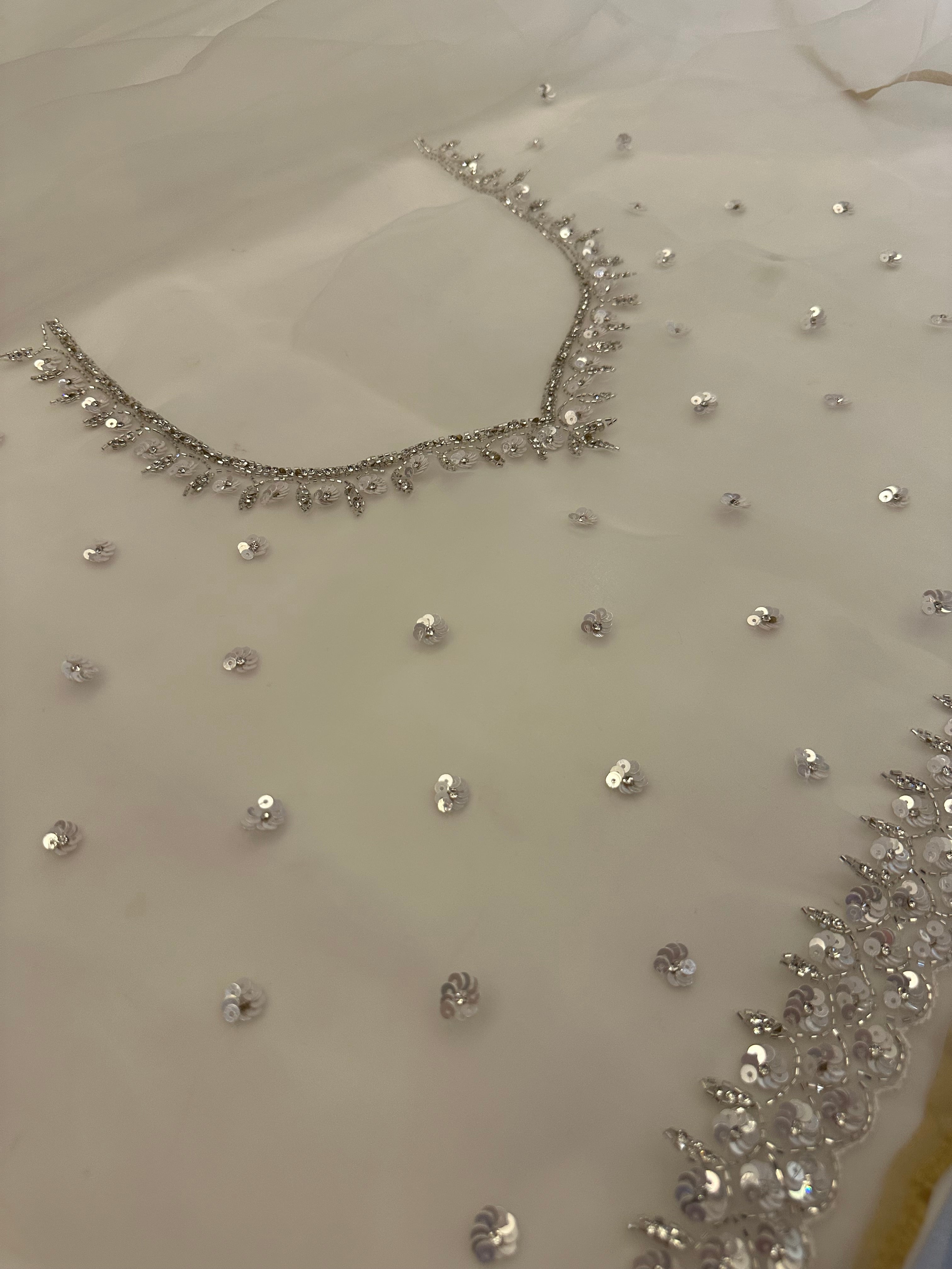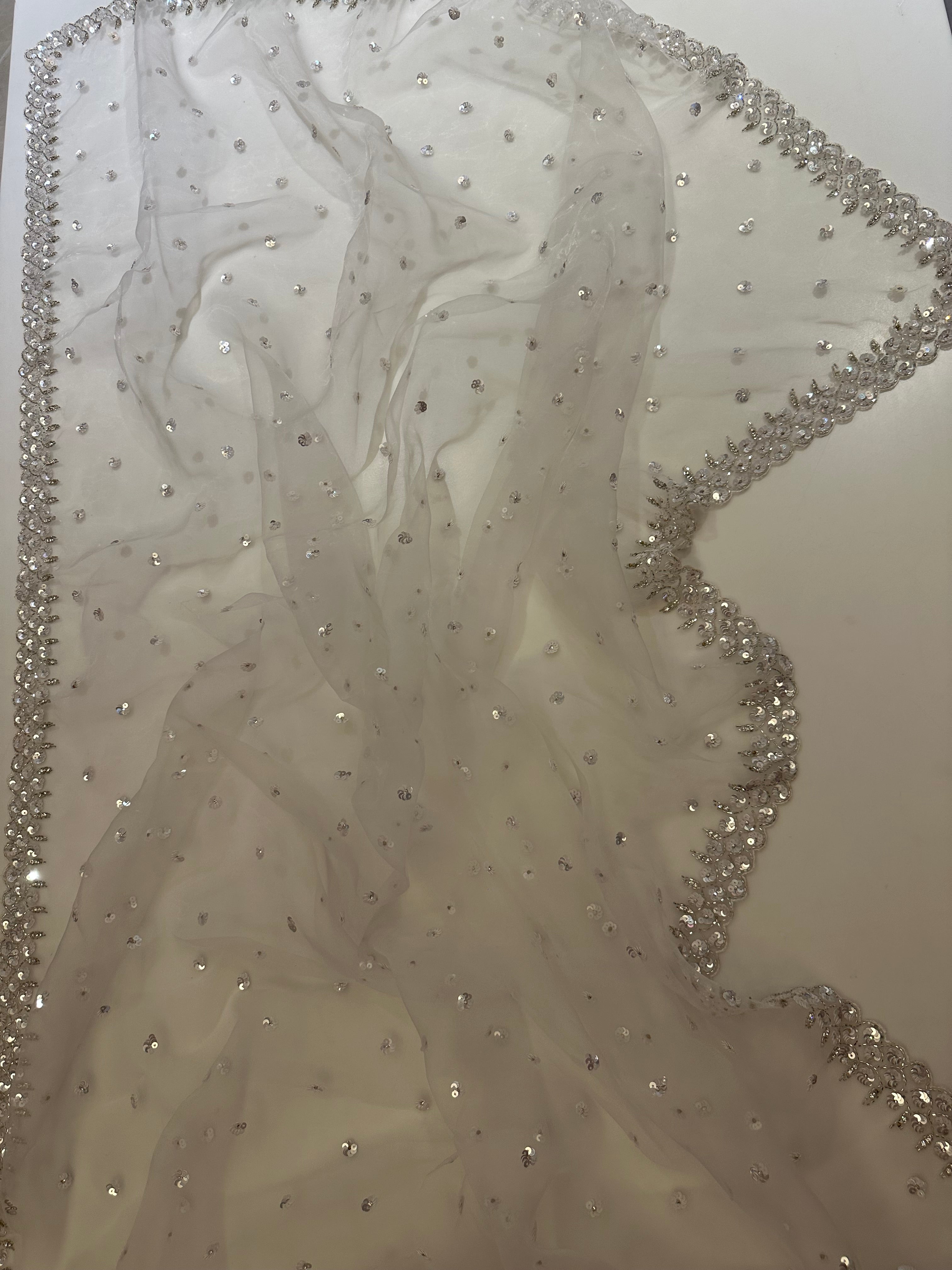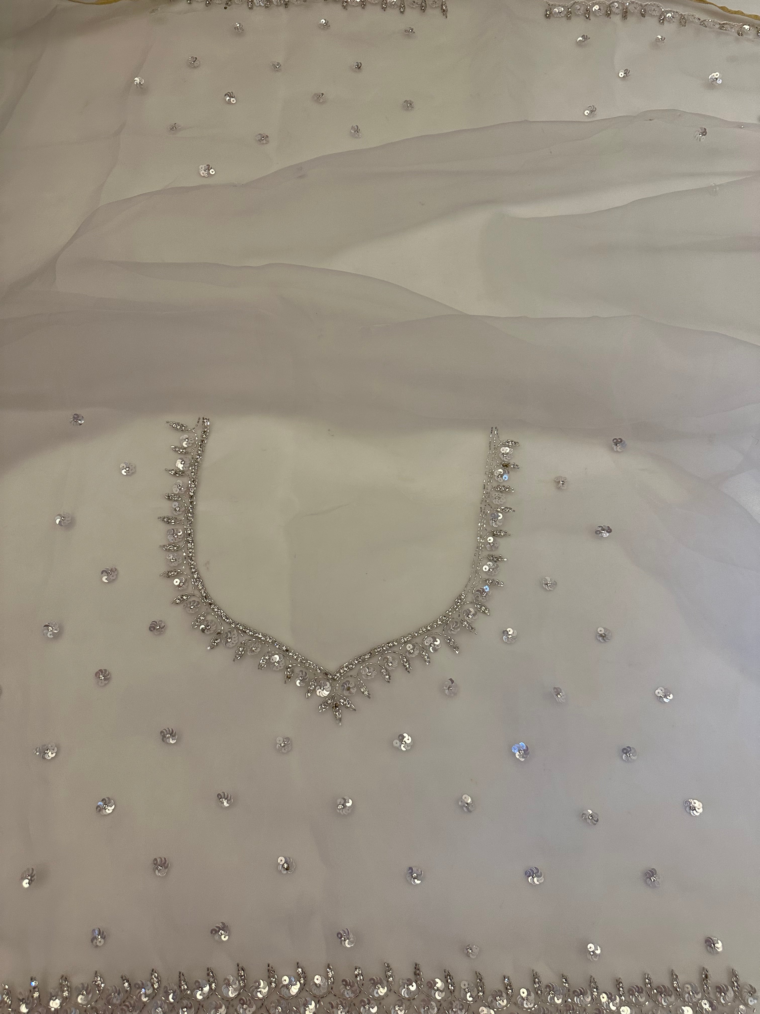 Milk white moon light glow organza white saree with blouse, all over saree handwork sequins with Swarovski, beautiful handwork cutdana sequins boarder.
