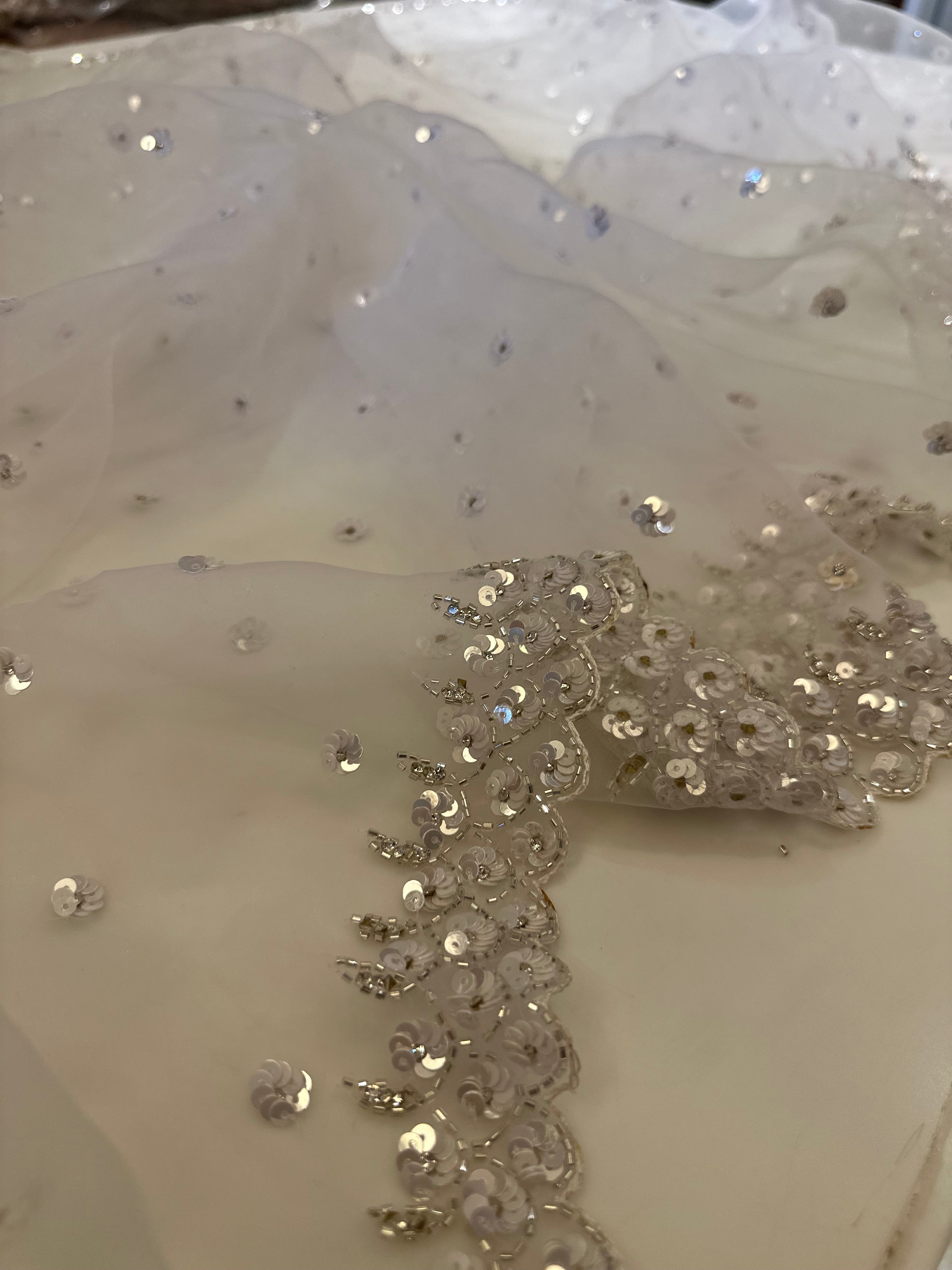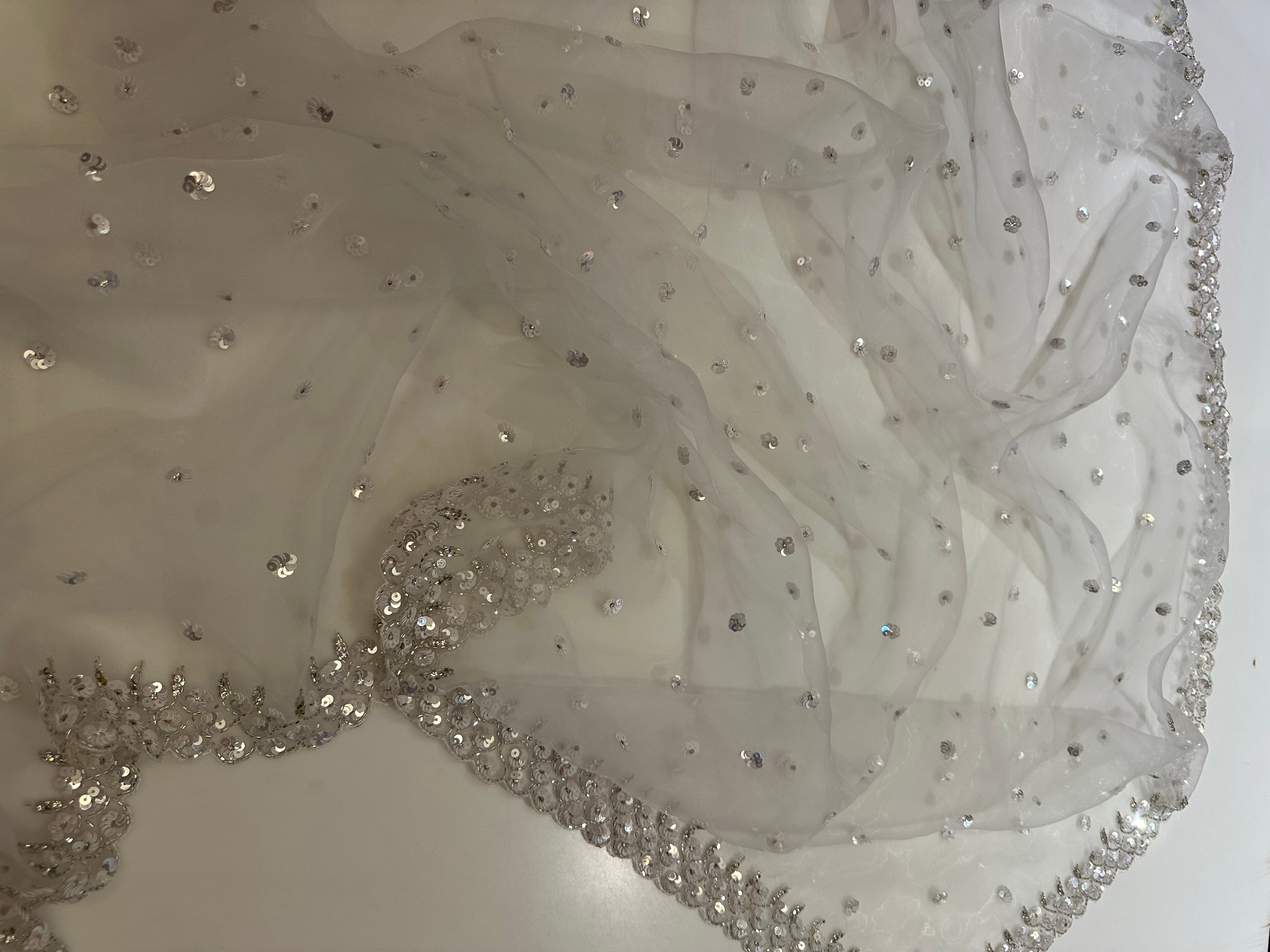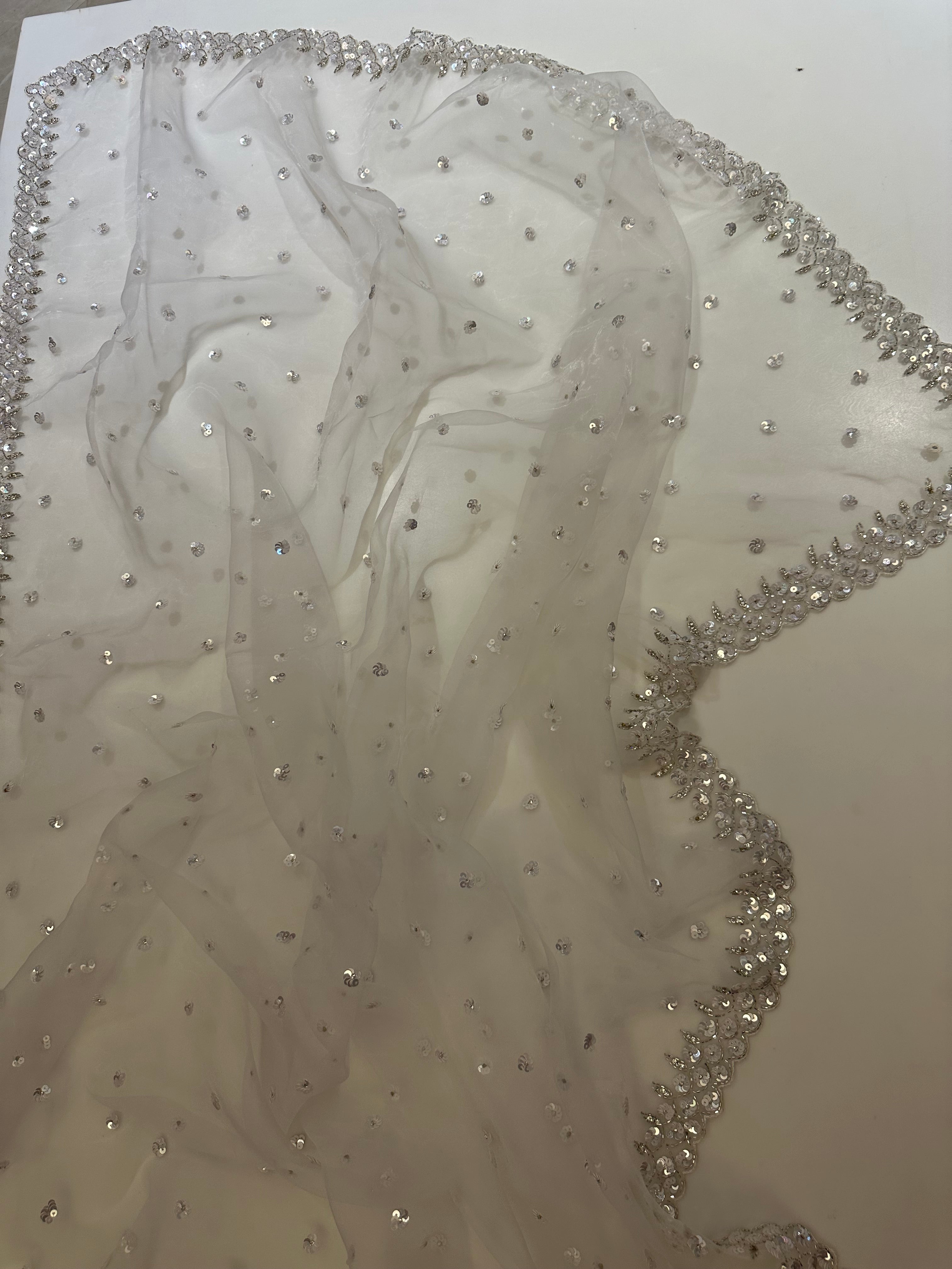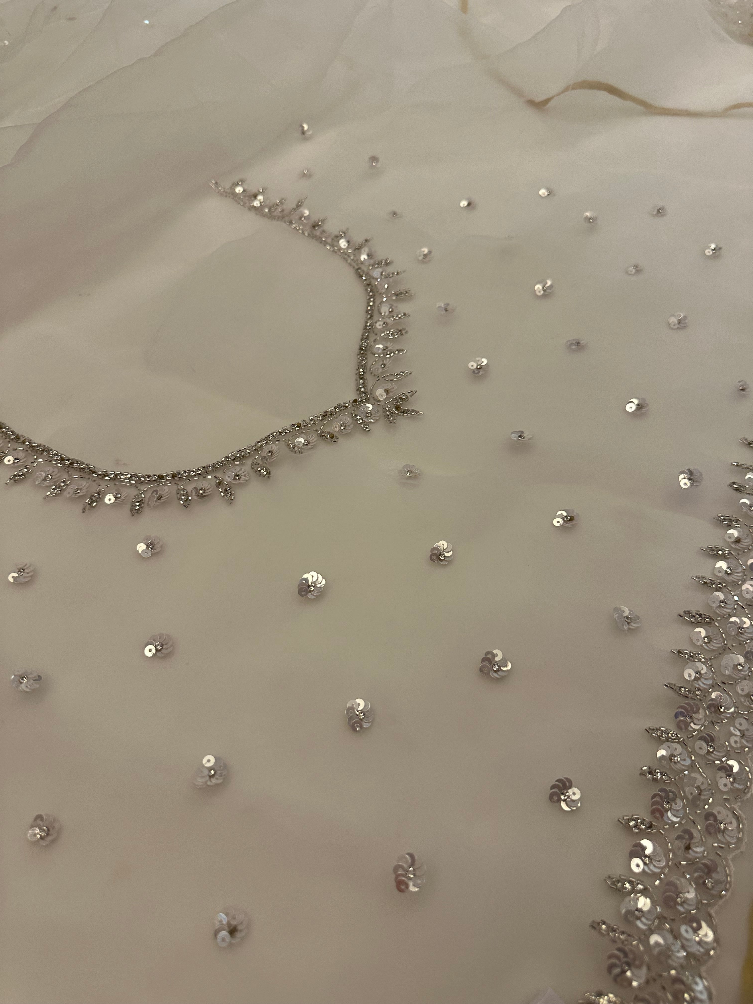 Milk white moon light glow organza white saree with blouse, all over saree handwork sequins with Swarovski, beautiful handwork cutdana sequins boarder.