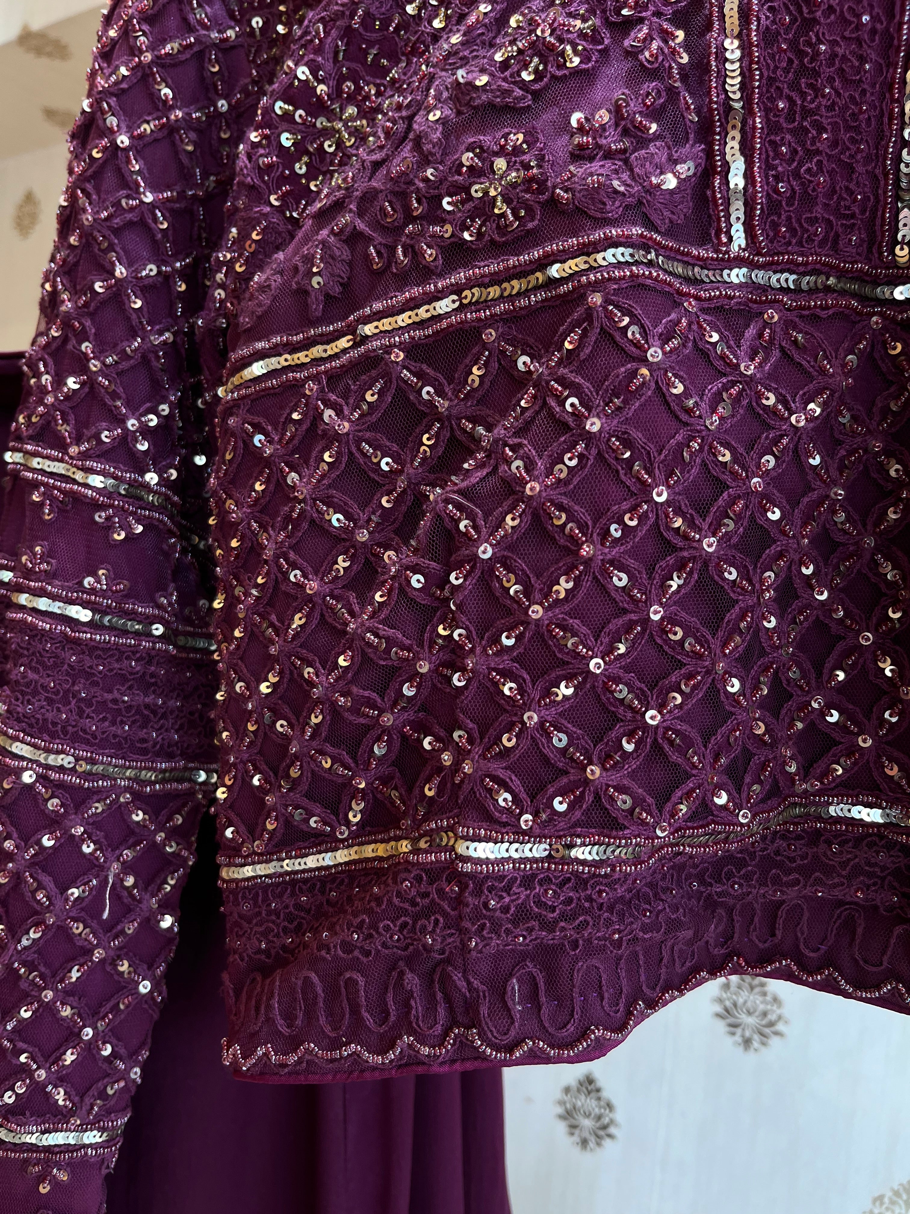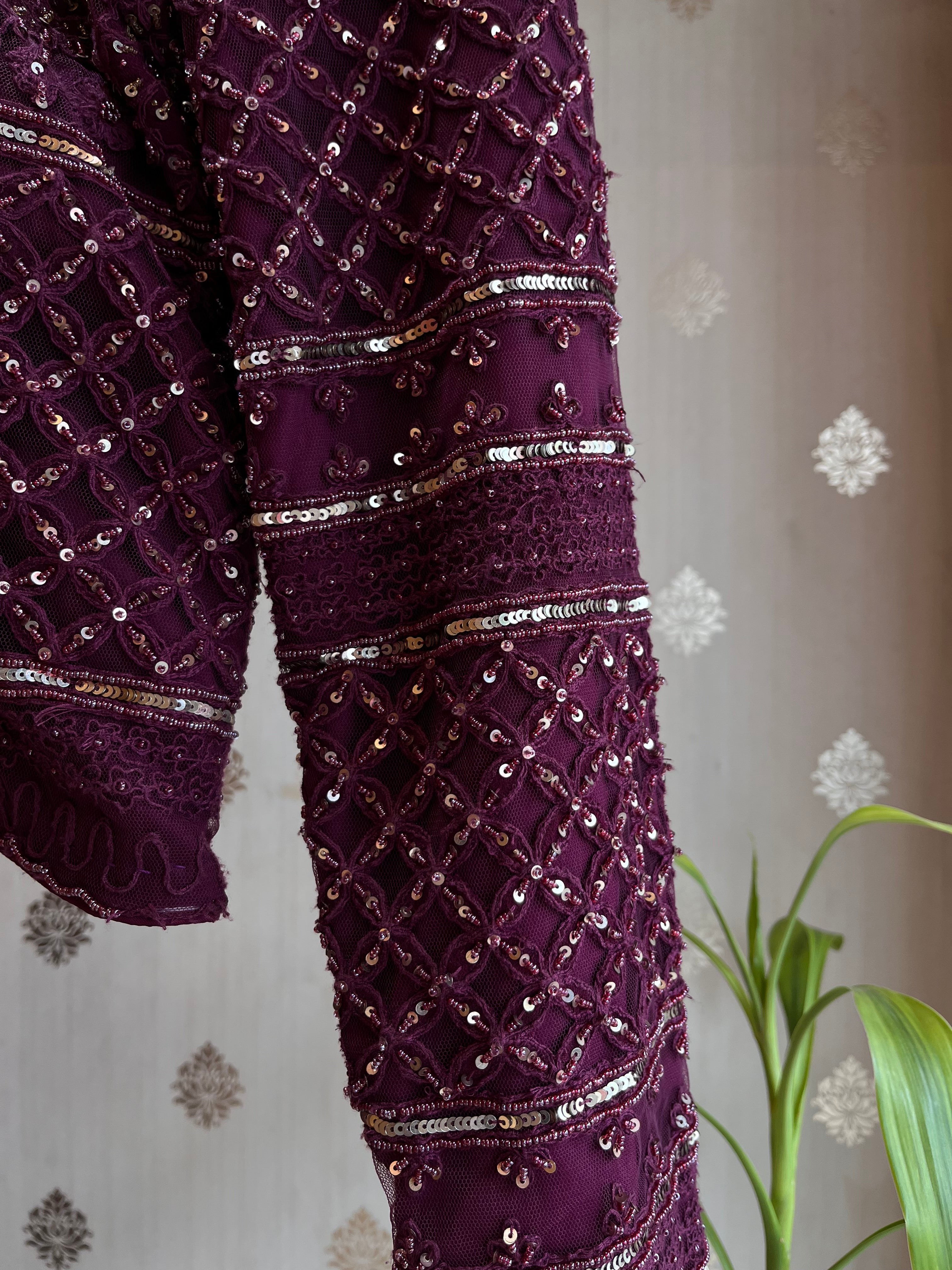 wine light lehenga set with net dupatta and blouse  fine golden sequins and cutdana handwork